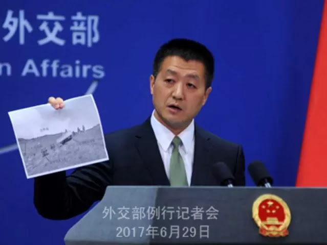 In an unprecedented move, Chinese Foreign Ministry spokesman Lu Kang on Thursday displayed two photographs of the alleged Indian "incursion" into the area during a media briefing.